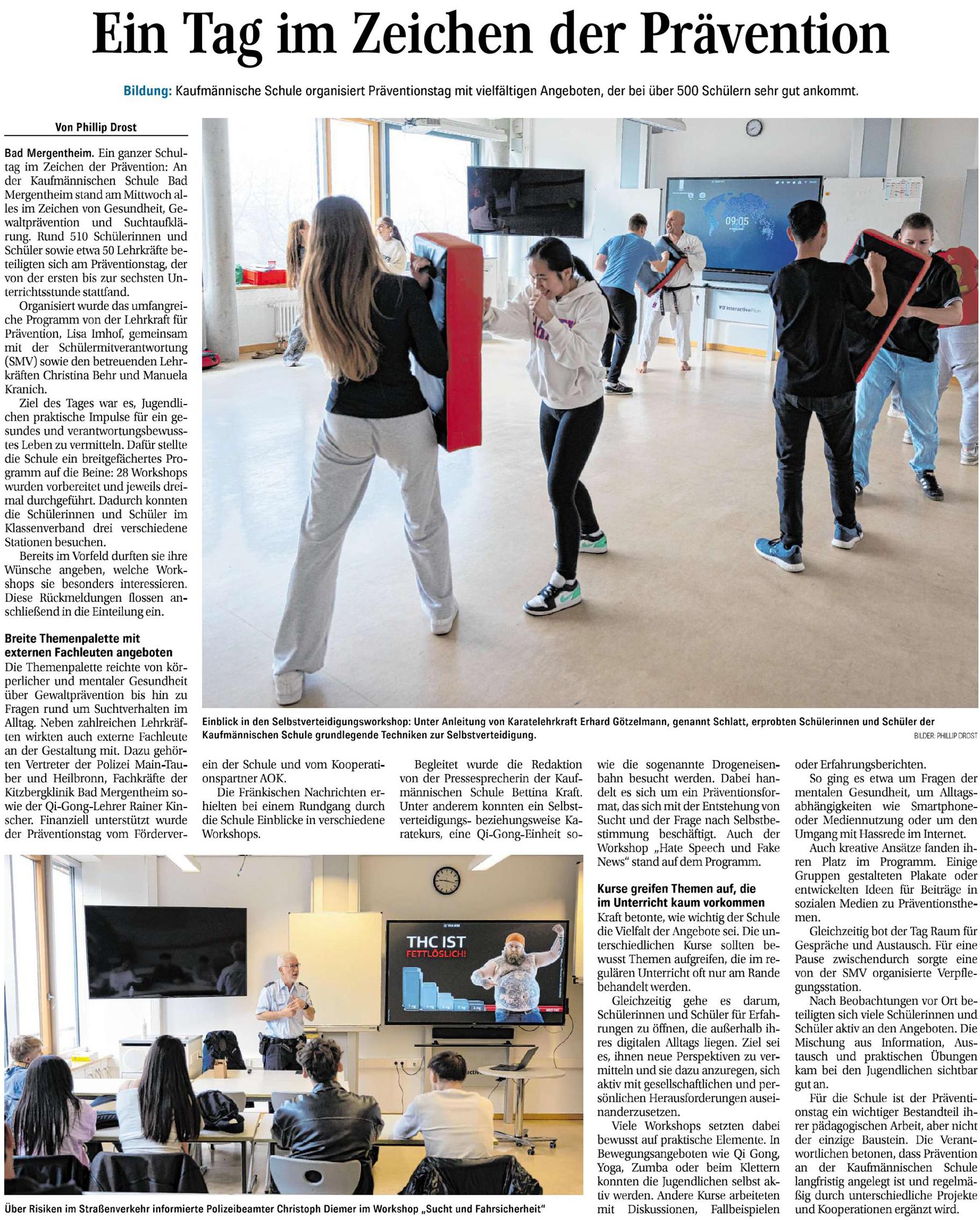 Am Präventionstag der Kaufmännischen Schule Bad Mergentheim befassten sich alle Schülerinnen und Schüler im Klassenverband mit Themen aus den Bereichen